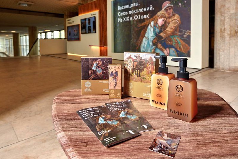Специально к открытию выставки «Васнецовы. Связь поколений. Из XIX в XXI век» Natura Siberica создала лимитированную коллекцию косметических наборов с изображениями картин: «Богатыри» (набор для ухода за руками), «Гамаюн» (крем для рук), «Иван-царевич на Сером Волке» (детский набор).