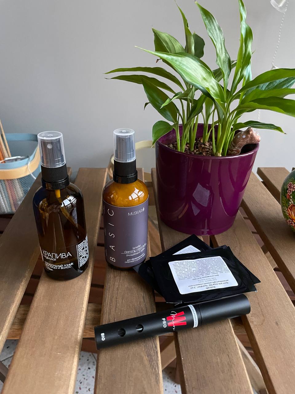 У меня обновки! 🥳 После того, как попробовала гидролат от Muskari, побежала за другим гидролатом и молочком. К заказу положили саше, брала на Wildberries. Переживала, что может приехать битым стекло, но упаковали хорошо, все целое.