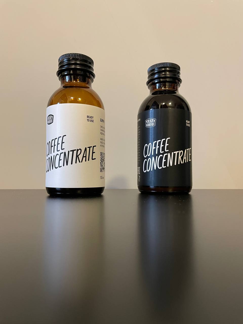Если у вас нет кофемашины или вы в путешествии, на работе, да просто лень молоть зерна и варить кофе, можно использовать кофейный концентрат. Он подходит для эспрессо, американо, авторских напитков. Есть вариант для напитков с молоком и без.