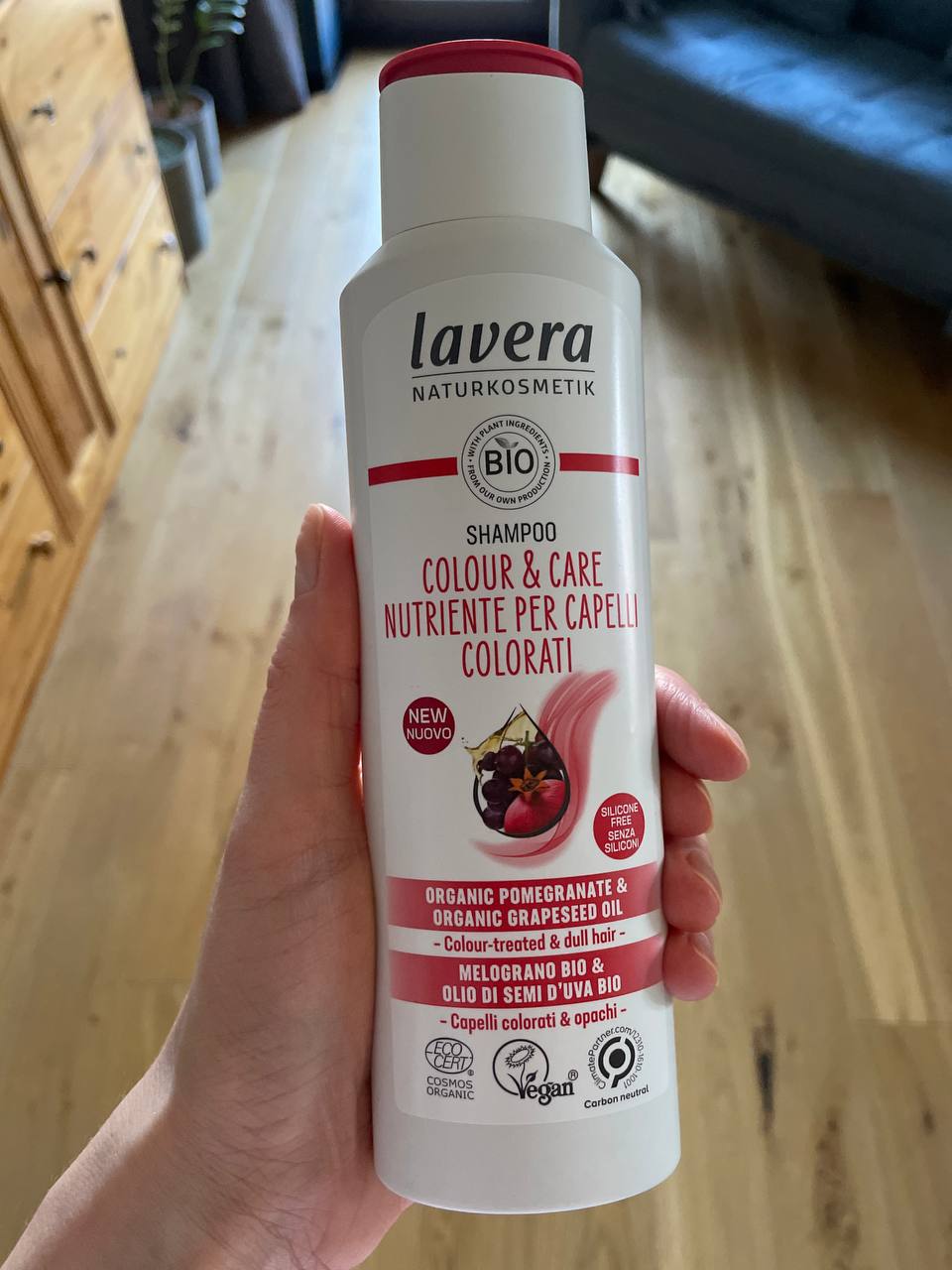 💚 LAVERA Натуральный шампунь "Защита цвета и уход", 250 мл: отлично пенится, хорошо промывает, не спутывает полотно волос.